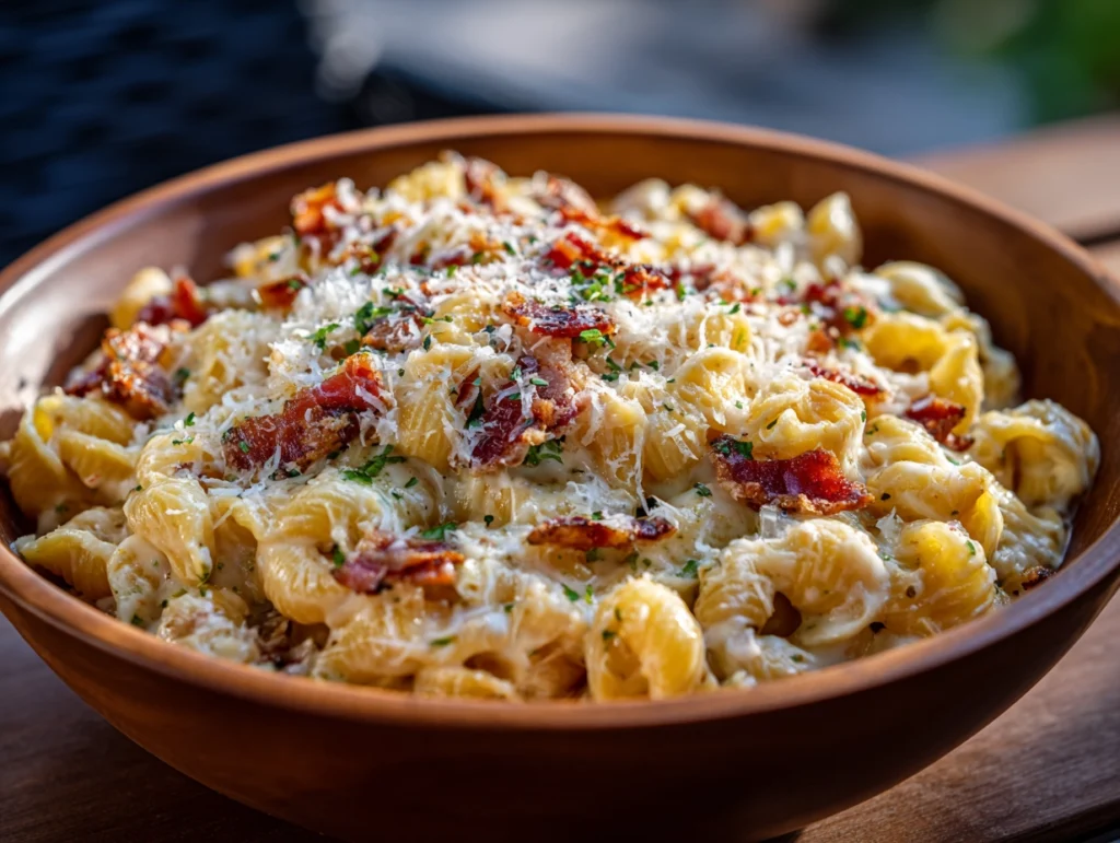The best part about this recipe is how simple it is to prepare while still tasting like something you would order at a restaurant. With a blend of cheeses, perfectly cooked pasta, and crispy bacon mixed throughout, every bite delivers a balance of creamy, cheesy goodness and smoky flavor. It is the ultimate comfort food, perfect for weeknight dinners, potlucks, or when you just want to treat yourself to something special.