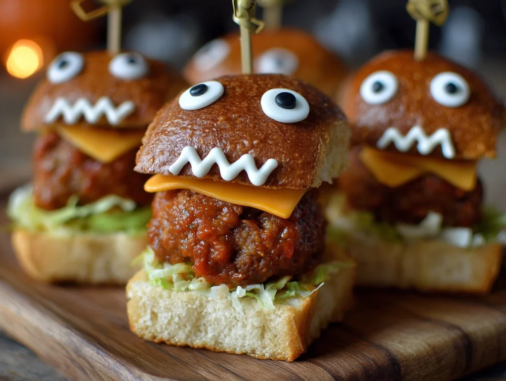 Halloween monster meatball sliders are a fun and flavourful way to celebrate the season. They combine juicy meatballs, melted cheese, and soft buns with playful decorations that make them the star of any party. Simple to prepare and customizable with your favourite flavours, these sliders are sure to be a hit with both kids and adults.